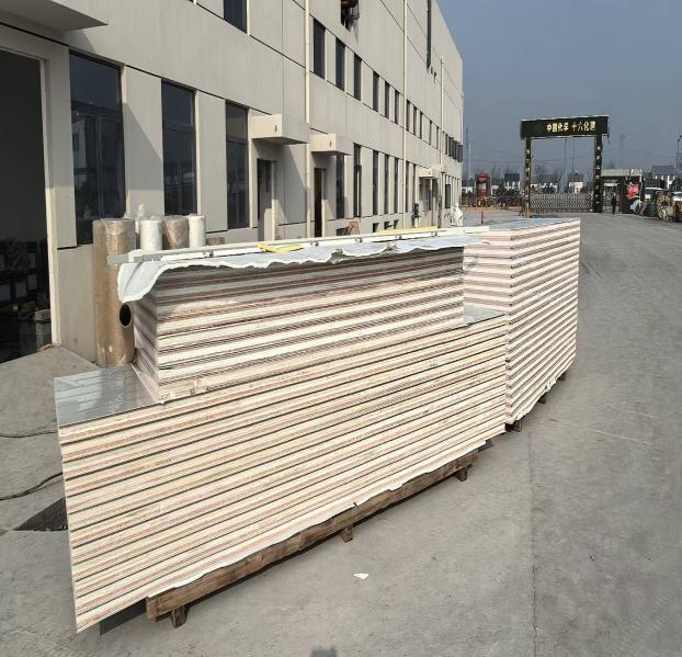 研发小组针对传统冷库建造过程中易失火、运营能耗高、建造周期长、成本大等特点。通过热力学机理的大数据分析,建立融合机理模型和数据驱动模型的保冷散热运行优化模型,对保冷需求提出合理化的设计,科学选择保温材料、从工程化应用上降低散热损失,最终形成了三项关键技术,一是高精度模型计算系统AI仿真模拟软件,专门适配冷库气凝胶内保温系统设计,可实现数据自动采集与模拟计算,能针对不同使用需求,精准给出保温层厚度最优模拟数值,同时对保温系统设计效果进行全面系统评估,为设计环节提供科学支撑。二是适用于冷库的气凝胶保温毡制备工艺及连续生产装置,大幅提升冷库保温隔热材料综合性能,其导热系数可低至0.021W/(m·K)以下,燃烧性能达到A1级,具备优异的耐低温、防潮、阻燃及抗老化特性,有效延长冷库保温工程使用寿命。三是研发了一种金属面纳米气凝胶复合绝热板、新型冷库内保温系统设计方案及装配化施工技术方案,将1#储冰间原设计(-4℃)降至(-15℃),对原设计中顶棚、墙面及地面的设计方案进行设计优化,采用自主研发的金属面气凝胶复合绝热板,该复合板材具有超低导热性能和A1级不燃特性,同时其抗弯荷载、拉伸粘接强度、抗冲击性、面板收缩率及甲醛释放量都通过了第三方权威机构的检测,并满足设计要求。突破了传统技术规程中的施工方法,采用工厂化预制加工,并运送至施工现场进行装配化安装,大幅度降低人工成本和过程操作的安全风险,提高了施工效率,不仅为施工方增值,而且为业主方在冷库运营中的节能、降碳及安全性等方面产生了良好的、可持续的增值。