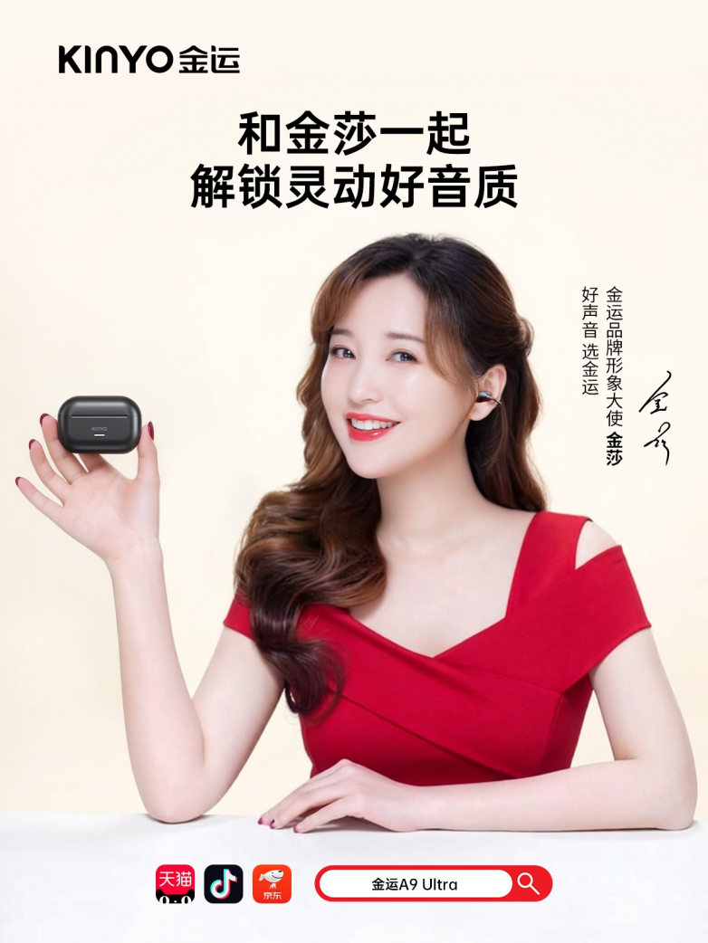 随着此次合作正式发布,KINYO金运也向市场传递出进一步的品牌信号:在持续积累产品实力与用户基础之后,品牌正迈向更完整的表达阶段。此次以“金声好运,与莎同行”为主题展开合作,不只是一次品牌形象合作的落地,也是KINYO金运在智能音频赛道持续深化品牌认知的重要一步。