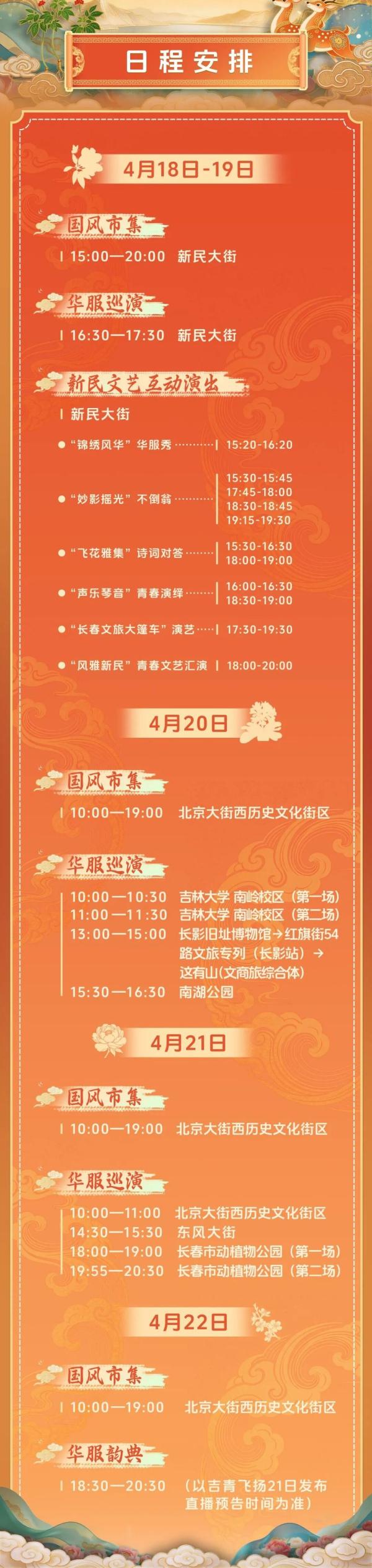 新民大街临时性交通组织调整!2026年中国华服周·吉韵东方即将举办! 2026-04-16 23:08 来源:中国吉林网 4月16日,不少小伙伴都看到了本周末(4月18日—19日)新民大街实施临时性交通组织调整的消息,每日15时至21时将调整为“步行模式”,大家是不是很好奇这周长春都有什么活动?中国吉林网、吉刻新闻记者了解到,新民大街将举办“2026年中国华服周·吉韵东方”系列活动。现在,活动具体日程安排来啦! 具体时间请以现场演出时间为准感兴趣的市民游客朋友们不要错过哦!中国吉林网 吉刻新闻记者 孔令辉视频、海报来源:共青团吉林省委