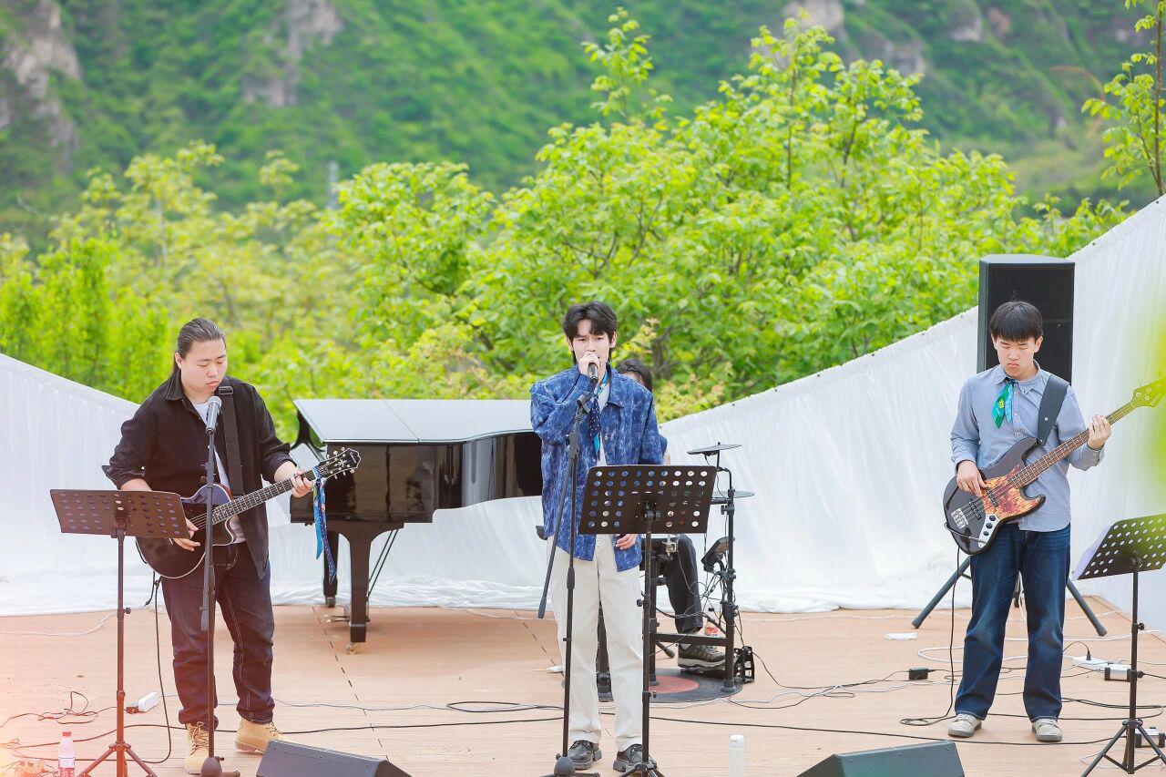 本次活动由赫兹共振乐队与当地村民艺术家共同呈现,音乐风格涵盖流行、民谣等多种类型。乐队的贝斯与键盘旋律在山谷中回响,赢得观众阵阵掌声。演出间隙,游客还可自发登台参与互动,实现零门槛沉浸式体验。